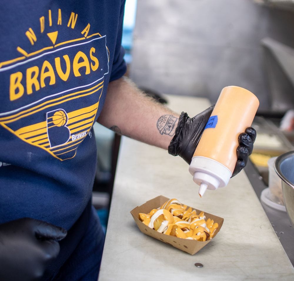 So it’s no coincidence that as Bo and his sister/Co-Owner Becky Gonzalez have grown Bravas, they’ve drawn more from their own experiences and family traditions as Spanish-Americans. What started as a hot dog cart on the streets of Downtown in early-2010s has grown into not only a favorite local burger and hot dog joint, but also an eclectic full-service dinner establishment, bringing pintxos (a “pinch” or small plate) culture to Fort Wayne with tables covered in tapas to be shared over bottles of Spanish wine or beer. And one year into this new iteration, Bo and Becky are happy about how things are going.