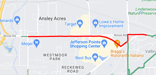- Southwest Fort Wayne is getting a new Illinois Road Trail, thanks to a $1 million Next Level Trails grant from the state. A 10-foot-wide asphalt trail, beginning in Rockhill Park, will provide new connectivity to Jefferson Pointe Mall, Apple Glen Shopping Center, Parkwest Shopping Center and Meijer. It will also join with Getz Road, where an existing 1-mile sidewalk connects to businesses, churches, entertainment, apartments and neighborhoods. Lindley Elementary School and Portage Middle School will connect to the trail via the existing Ardmore Avenue Trail and Towpath Trail, too. The project is expected to be complete by the spring of 2025.