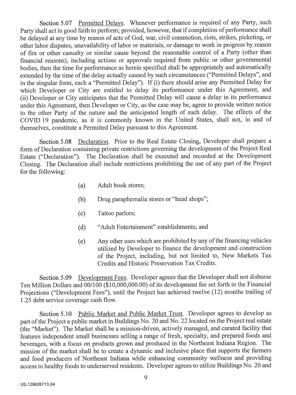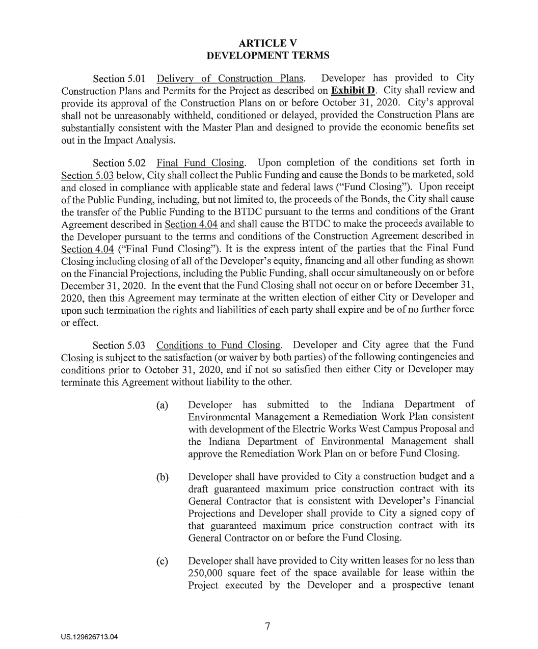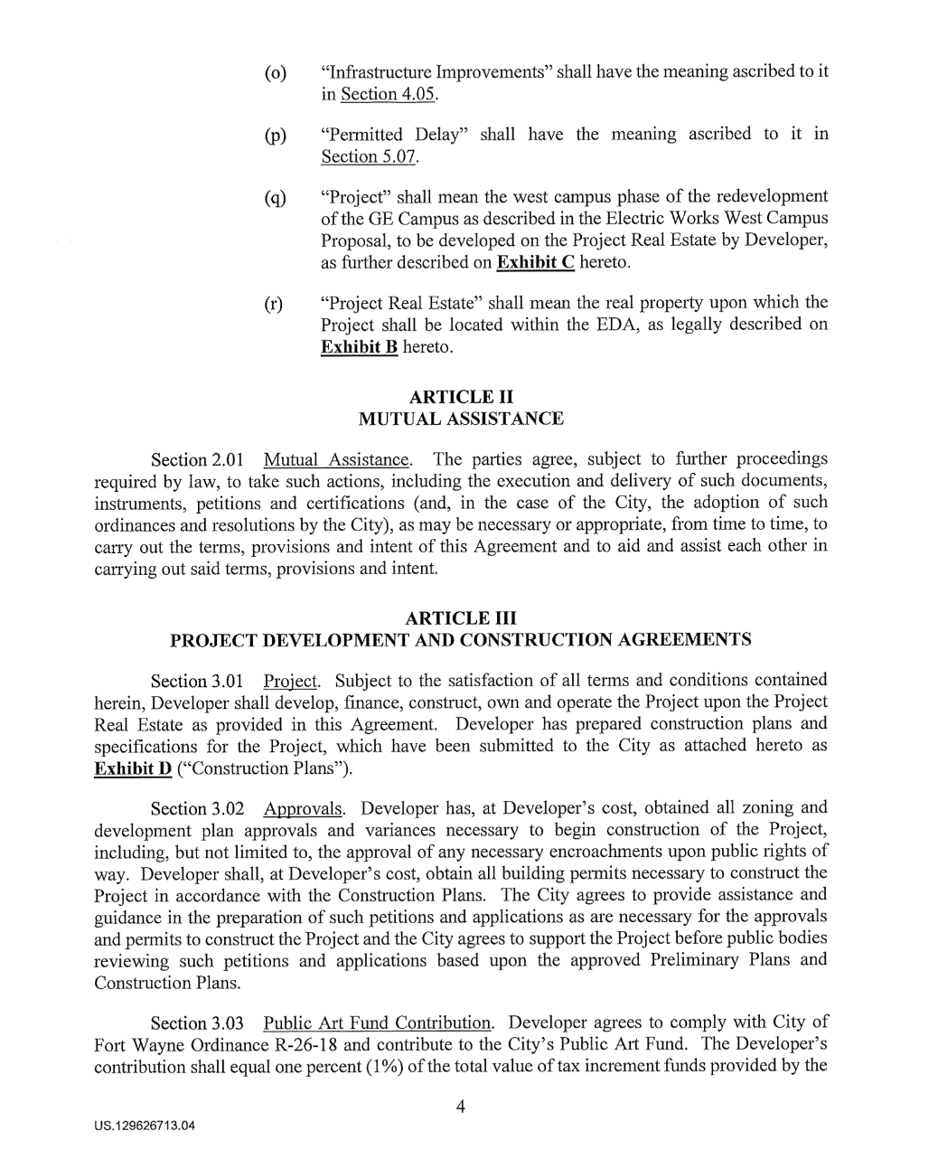 Document: The 2020 Economic Development Agreement between the City of Fort Wayne + Electric Works developers