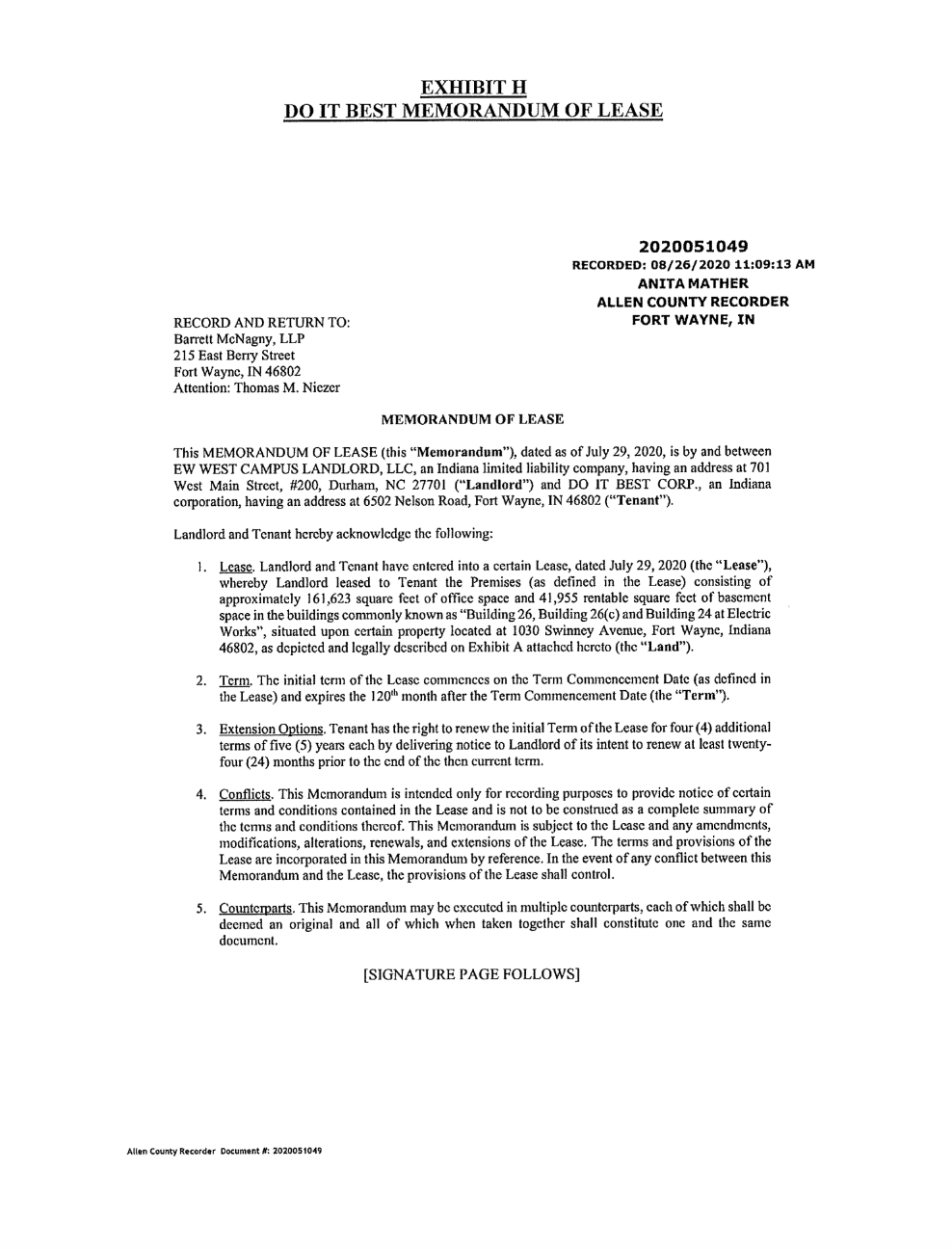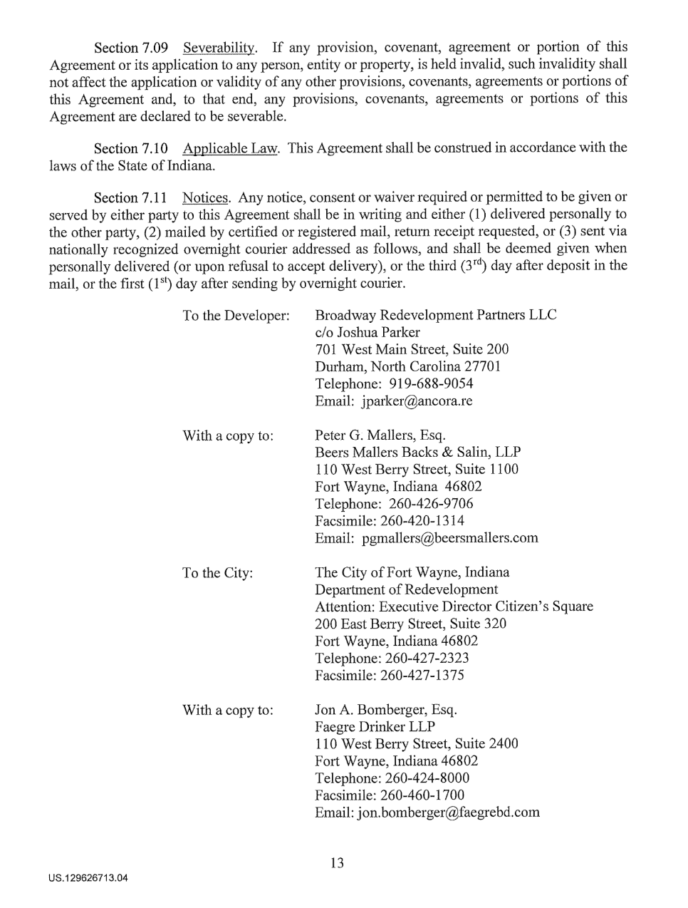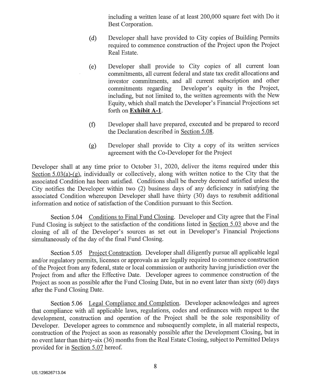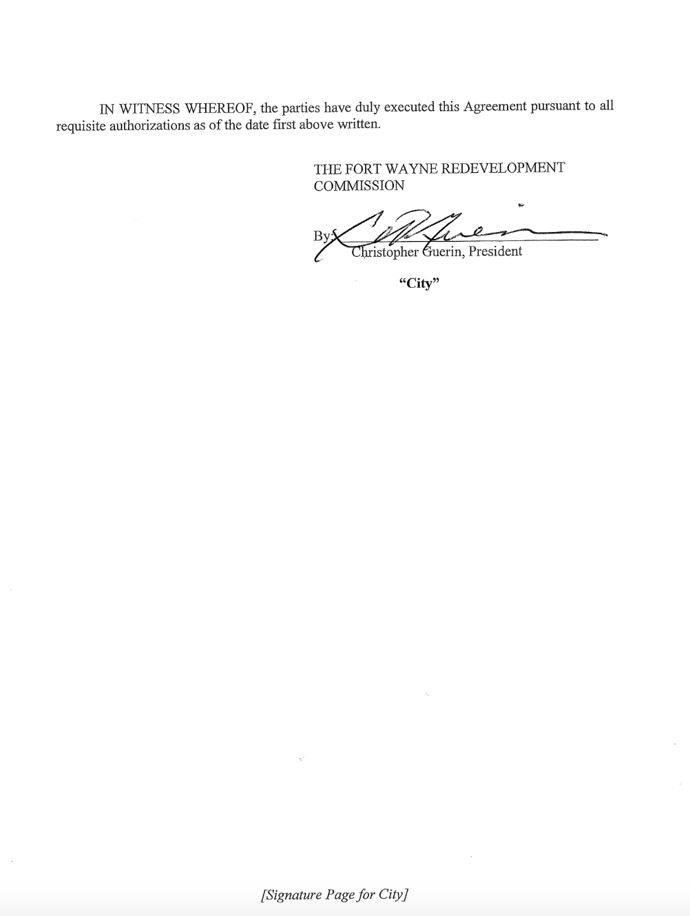 Document: The 2020 Economic Development Agreement between the City of Fort Wayne + Electric Works developers