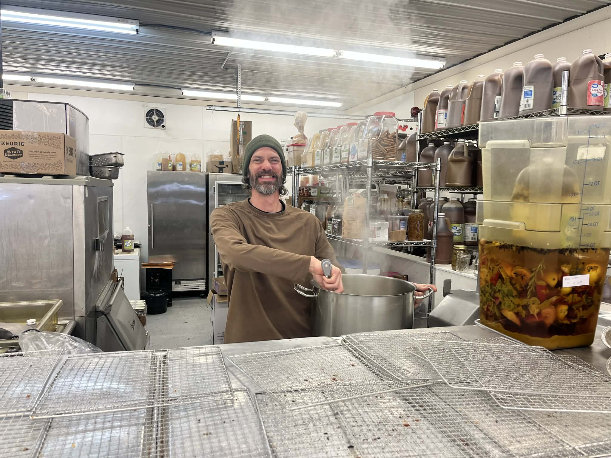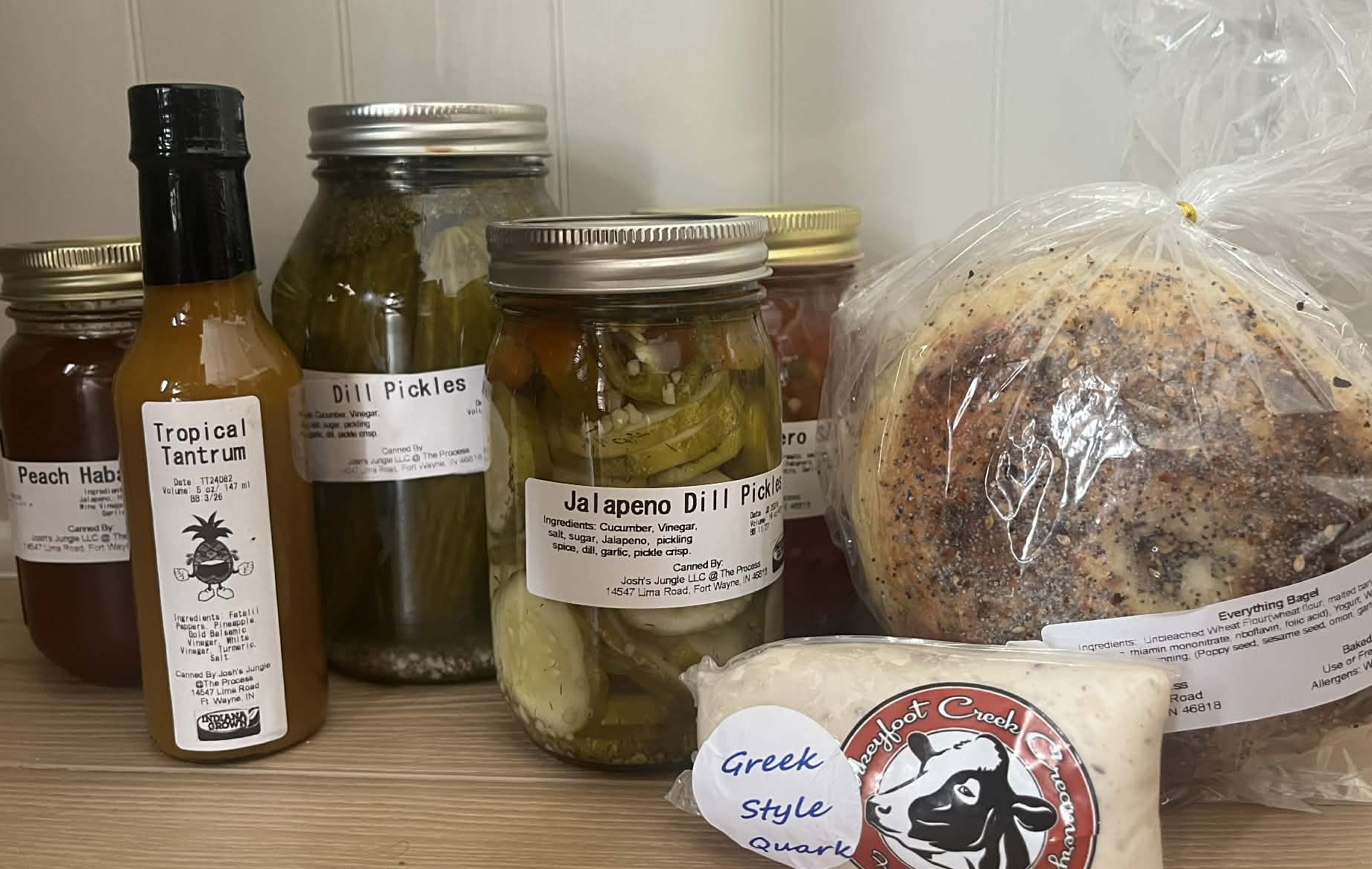 When we walked through the doors of this spacious one-room market, we were first greeted by the sweet briney smell of vinegar wafting from a pot behind the counter. Soon after, we met the man behind the pot: Owner Josh Cockram, of Josh’s Jungle, who started his growing plants and produce about 13 years ago and has been selling them ever since. He opened The Process about three years ago where he sells the fruits (and veggies) of his labor along with other locally made foods and goods, including house-made bread and bagels. The Process feels like a year-round farm stand with its rustic, working kitchen in back and wooden shelves up front, stacked high with pickled vegetables and sauces. On the perimeter, you'll find local refrigerated products, as well as body products, breads, pastries and sweets, like fudge. Cockram recommends his pickles and hot sauce – both of which we purchased and can attest are delicious. He’s also offering a series of "how to" classes (starting this month!) if you’d like to try your hand at canning and preparing other home staples.