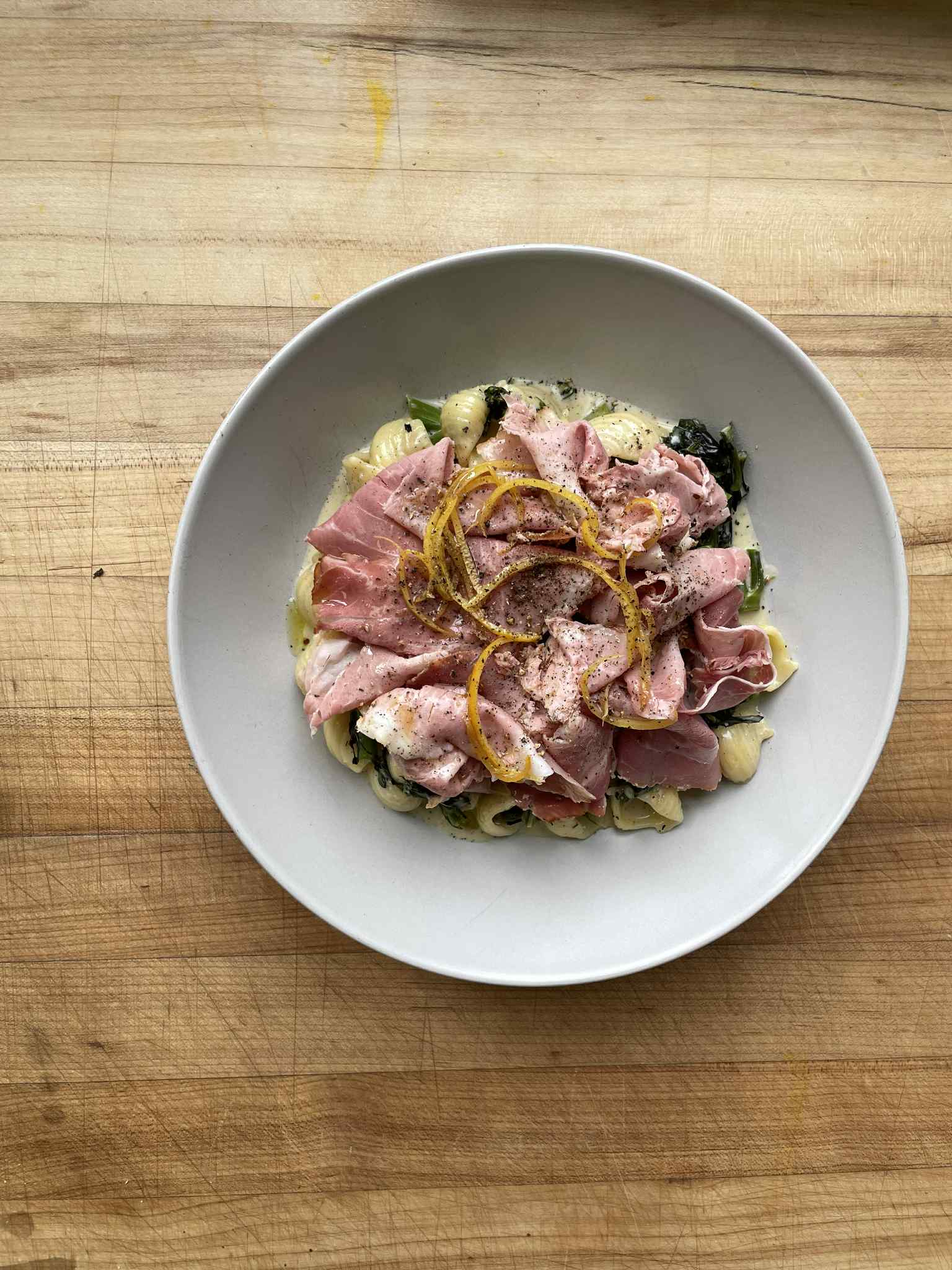 - One of Richardson’s favorite pastas so far was an agnolotti, which he describes as “a half ravioli that we stuffed with caramelized cabbage, braised short rib, and goat cheese,” covered in a sauce that was “a reduction of a beef demi-glace and dry apple cider.”