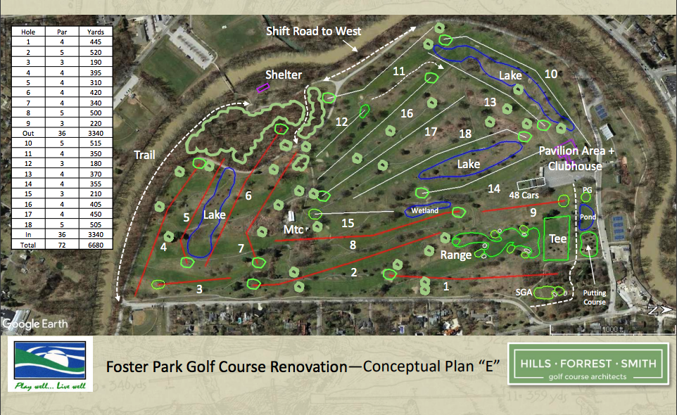 Speaking of Foster Park, there have been a lot of conversations about the golf course there, too. Some residents have expressed concerns about how plans to expand the golf course for its 100th year celebration might impact the park’s trail, diverting it into the woods with less visibility for trail-users. What’s the status of that redesign project?